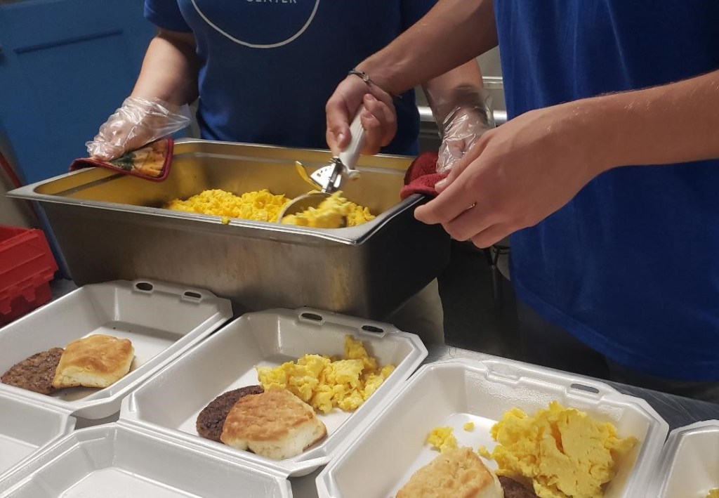 Cracking eggs on the side of a large metal bowl, the young volunteer and I made small talk as we prepared breakfast for folks in need of a hot meal. Figuring we’d need about 18 dozen to feed everyone, our conversation carried on as we cracked, whipped and then cooked eggs, sausage and biscuits. In the midst of our serving, she mentioned how tired she was, so I asked, “Oh, do you have young children at home?” Assuming little ones were stealing away her night’s sleep.