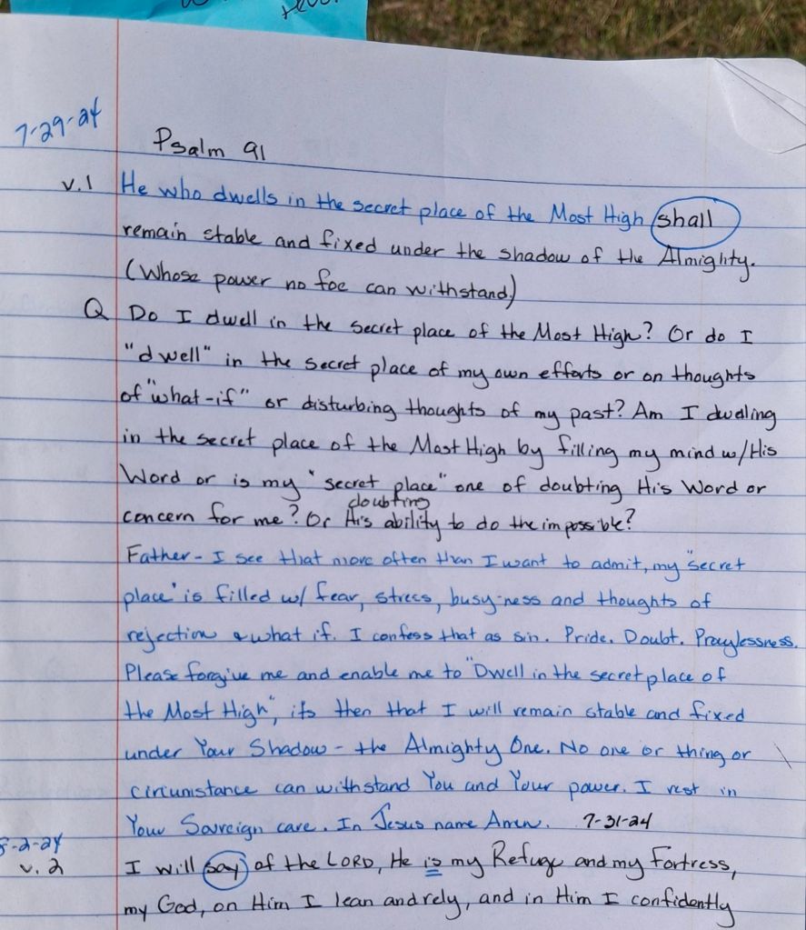 Now that you’ve read mine, try prayerfully reading the verse for yourself and allowing the Holy Spirit to probe your heart, then write out your own thoughts. You won’t be disappointed.